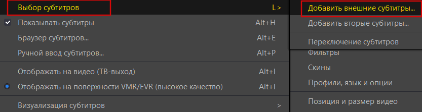 | Отключение субтитров ↓ | Добавление других субтитров ↓ | |